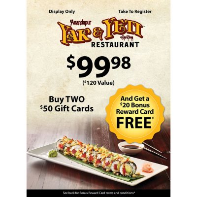 Gosh Im getting hungry just thinking about all the incredible food there. The Super iCARD Gift Card can be redeemed for a Yak Yeti Gift Card gift card. We are working on enabling digital gift cards on our site.